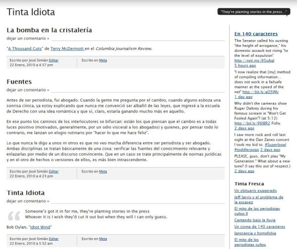 Just as if I had unlimited free time on my hands instead of none, I have decided to start a new blog on media. Tinta Idiota is a blog in Spanish about the digital revolution and journalists I admire and loath.